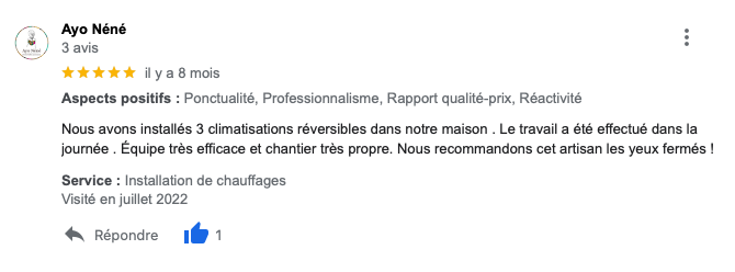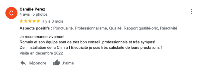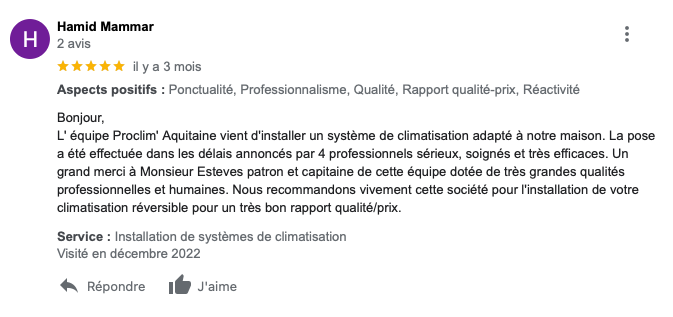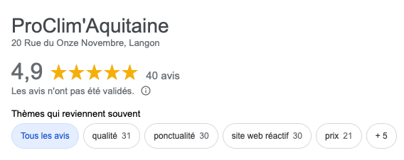 Avis recueillis sur Google Business Pro